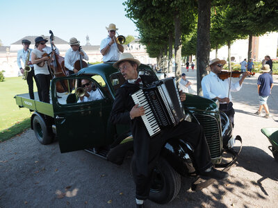 Die Classic-Gala Schwetzingen wird von einer Vielzahl an Walking-Acts belebt, die mit ihren mobilen Auftritten für spontane und dynamische Klangerlebnisse sorgen. Ob zwischen den Oldtimern oder entlang der prachtvollen Alleen des Schlossgartens – diese Bands bringen Musik direkt zu den Besuchern.